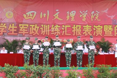 孟兆怀代表学校党委行政对武警达州市支队的承训教官们表示诚挚的谢意,他说,三周以来,教官们顶着酷暑、冒着蒙蒙细雨,按照军政训练团的统一要求,尽职尽责,以坚定的政治信念、出色的组织能力、严明的组织纪律和过硬的军事素质,展示了武警官兵文明之师、威武之师的良好形象。训练中,教官们严格要求,以身作则,使刚刚跨入大学校门的新同学受到了良好的爱国主义教育和组织纪律教育,为他们上好了大学生活的第一课。他希望同学们能够以次军训为起点,继承和发扬武警官兵艰苦奋斗、勇于拼搏的优良作风,并把这种优良作风运用于学习生活中,积极践行“博文大理,厚德笃行”的校训,遵规守纪,严谨自律,刻苦学习,勤奋上进,经过几年大学生活的磨练,把自己锻炼成一名政治坚定、品德高尚、知识广博、体魂强健、能力卓越的优秀大学生,以实际行动谱写自己的青春华章,实现自我人生价值,为祖国的繁荣富强作出自己应有贡献!