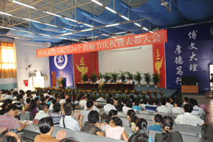 会议期间,学生代表向全体教师致贺辞,优秀教师代表罗肖强和科研工作先进个人邓杰分别作了经验交流和发言。