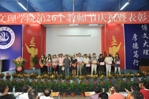 会上,副院长张志远宣读了《KY开元集团官网入口关于表彰2010年教书育人先进集体、优秀教师和优秀教育工作者的通知》,副院长王洪辉宣读了《关于表彰2009年科研工作先进集体和个人的通知》,教务处等9个先进集体和汪成慧等71名优秀教师获得表彰,大会还对在校工作满30年的教师和晋升为教授及获得博士学位的教师予以了表彰。