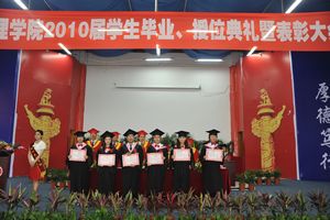 毕业典礼在庄严的国歌声中拉开序幕。大会上,院党委书记李万斌教授宣读了2010届校级优秀大学毕业生、省级优秀大学毕业生、数学建模竞赛、优秀本科毕业生优秀毕业论文、2009-2010年度国家奖学金以及国家专利获得者表彰文件;学院副院长王洪辉教授宣布了学院2010届毕业生获得毕业证书、教师资格证书、学士学位证书名单。我院2010届毕业生共有2299名,有2251人获得毕业证书,1615人通过教师资格证书认证,595人获得学士学位。接下来,学院领导为获奖、获得毕业证和教师资格证颁发了荣誉证书、毕业证书和教师资格证书。