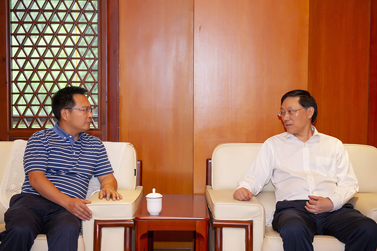 在第四个“全国科技工作者日”来临之际,副市长杜海洋来校慰问全市科技工作者代表陈岗博士。党委书记王成端会见杜海洋并介绍学校科研工作。