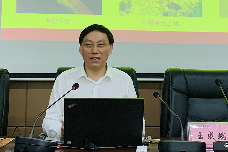 王成端讲授题为“习近平生态文明思想”的理论课。他梳理了十八大以来习近平总书记有关生态文明的重要讲话和出席、参与的重要会议及活动,并从加强生态文明建设的重大意义、原则,坚决打赢污染防治攻坚战以及加强党对生态文明建设的领导等几个方面对习近平生态文明思想进行深入解读,提升了学员们对于习近平生态文明思想的理解和认识。