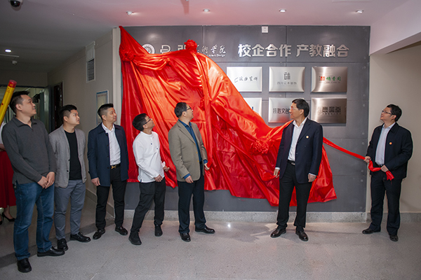 揭牌仪式结束后,学校领导一行参观了公共艺术分公司及入驻企业的实训现场,并提出指导意见。