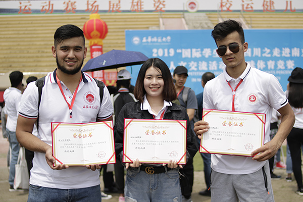 在以“印象四川”为主题的汉语演讲活动中,老挝籍留学生陆玉治荣获最佳口才奖;留学生表演的舞蹈《雀之灵》给参会师生带来一场色彩绚烂的视觉盛宴;在趣味体育竞赛“跳长绳”及“旱地龙舟”项目中获一等奖、“众星捧月”项目获二等奖。学校荣获“优秀组织奖”。