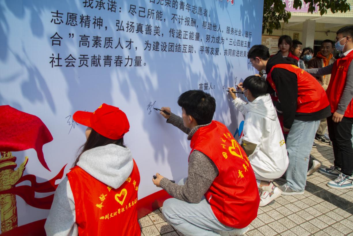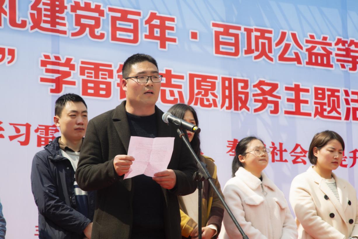 启动仪式上,学习雷锋志愿服务先进集体代表智能制造学院团总支书记张俊峰和优秀青年志愿者代表马克思主义学院/政法学院学生董宇帆上台作交流发言,分享开展志愿服务的经验做法和参加志愿服务的成长感悟,号召团员青年从我做起,从身边做起,从小事做起,从现在做起。出席活动的青年志愿者进行了宣誓、签名,并共唱了歌曲《学习雷锋好榜样》。