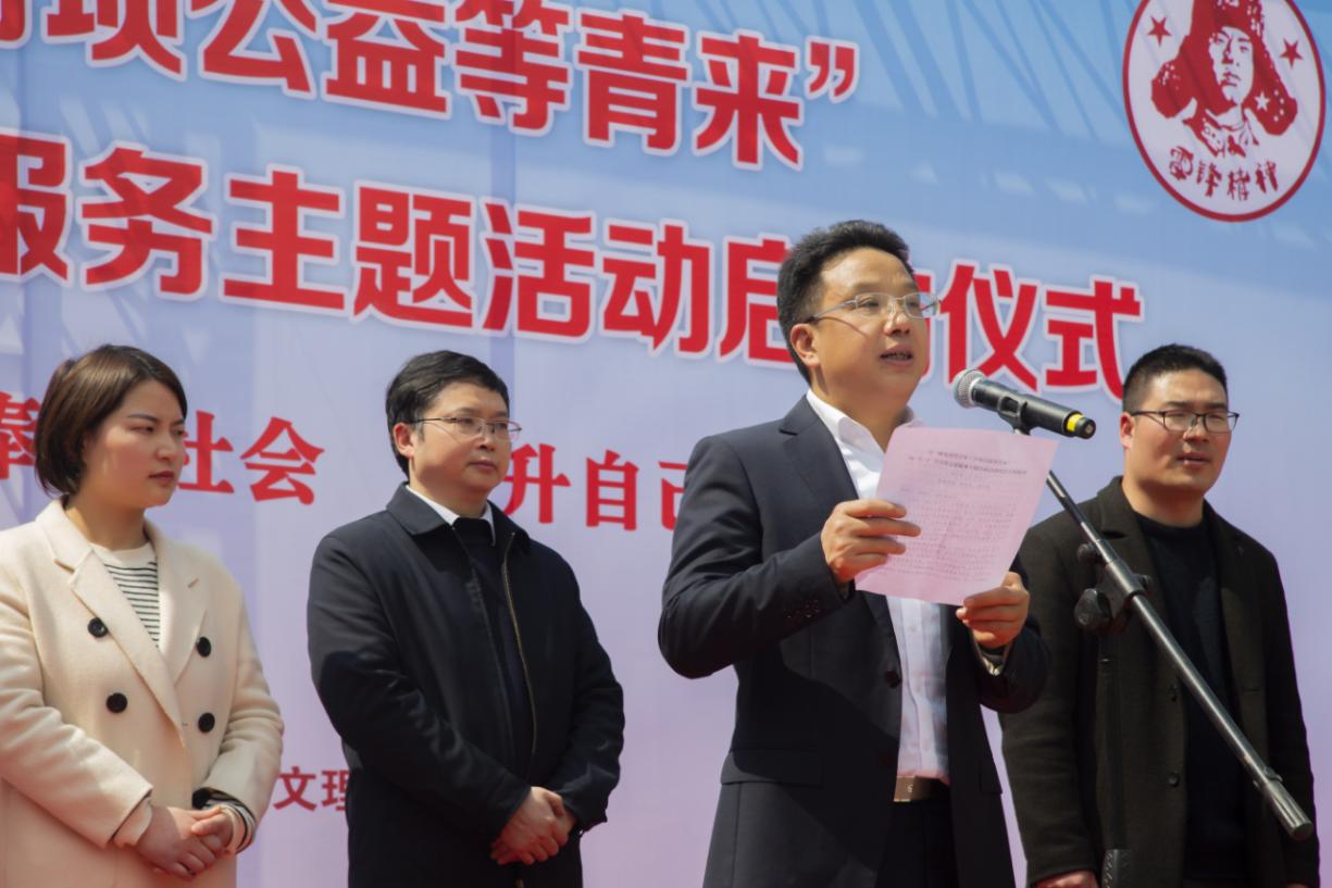 侯忠明宣布主题活动启动,并在讲话中指出,去年新冠肺炎疫情发生以来,文理青年志愿者积极响应党中央号召,走进社区、走进乡村、走进基层、走进校园,参加了疫情防控、邻里守望、扶弱帮困、文明劝导、文化服务、人口普查、环境清洁、美化家园等各类志愿服务活动,为他人送温暖、为社会作贡献,彰显理想信念、爱心善意、责任担当,成为人民有信仰、国家有力量、民族有希望的生动体现。他强调,要坚持走中国特色志愿服务之路,大力弘扬雷锋精神,推进志愿服务制度化,提高志愿服务能力,营造志愿服务发展良好环境;全校各级团组织要坚持在党的领导下,聚焦主责主业,搭建灵活便捷、形式多样的志愿服务平台,健全志愿服务风险防范机制,引领凝聚文理青年做文明风尚的宣传者、引领者、践行者,营造“有时间当志愿者,有困难找志愿者”的浓厚氛围,树立“我为人人、人人为我”的生活新风尚,让志愿服务在学校蔚然成风,为创建全国文明城市、文明校园和实现中华民族伟大复兴的中国梦贡献力量。