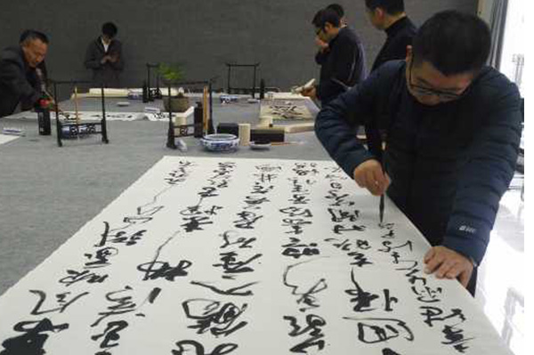 广安市部分书法家、美术家、中学负责人、电子博览城企业负责人、培训机构负责人和学生等100余人参加活动。
