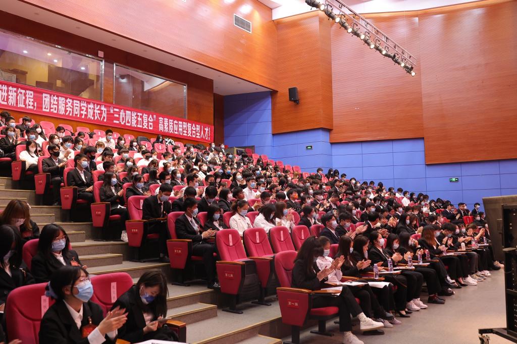 党委宣传部部长余文盛参加会议并讲话,他充分肯定了学生会在组织建设、思想引领、学生权益、学习实践等方面所取得的成绩,为今后学生会工作提出了明确要求,一是要坚定理想信念、做勇担强国使命的新青年;二是要加强学习实践,做“三心四能五复合”高素质应用型人才;三是要增强服务意识,做青年学生的知心人和引路人;四是要坚持从严治会,用新举措推进改革出成效。他希望,学生代表们要在实际行动中坚定理想信念,大胆创新,奋发向上,胸怀国家,凝心聚力,以蓬勃的朝气、昂扬的锐气融入到学校的各项事业中,为早日把学校建成特色鲜明、优势突出的高水平应用型大学贡献青春智慧和力量。