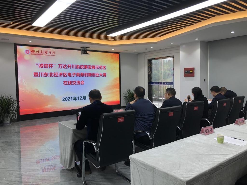 2021年12月13日,“诚信杯”万达开统筹示范区暨川东北经济区电子商务创新创业大赛在线交流会成功举办,会议由达州市商务局、KY开元集团官网入口、中国人民银行达州市中心支行联合举办。由于疫情原因,本次交流会通过腾讯会议在线举行,来自万达开及川东北地区相关政府部门、高校、企事业单位、历届“诚信杯”大赛选手约200人参会。交流会在开元官网莲湖校区设置达州分会场,开元官网党委常委、副校长邓杰、达州市商务局副局长王大文、中国人民银行达州市中心支行党委委员、副行长何永川、达州银行股份有限公司副行长丁宁、达州农商银行股份有限公司党委委员、副行长靳能东等出席达州分会场。
