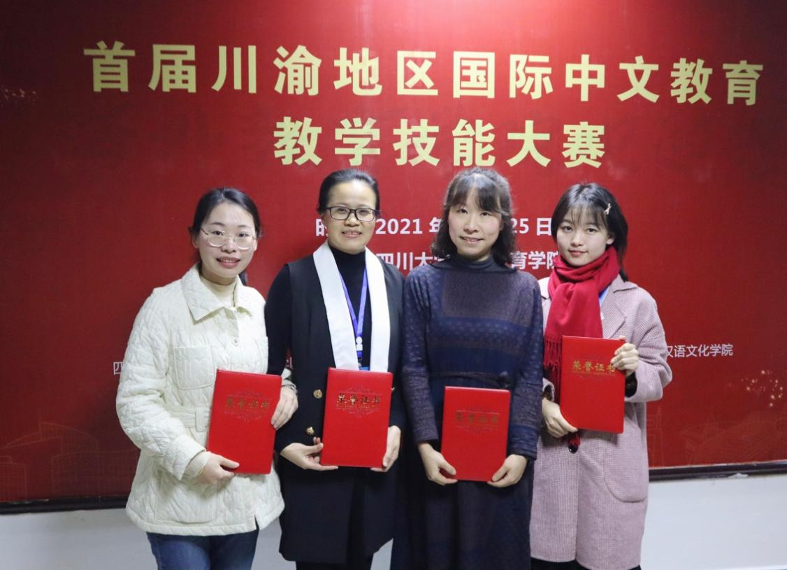 12月25日,文学与传播学院组织教师赴四川大学参加首届川渝地区国际中文教育教学技能大赛。郑岚心老师、胡苹老师获二等奖,王红羽老师、程祺老师获三等奖。