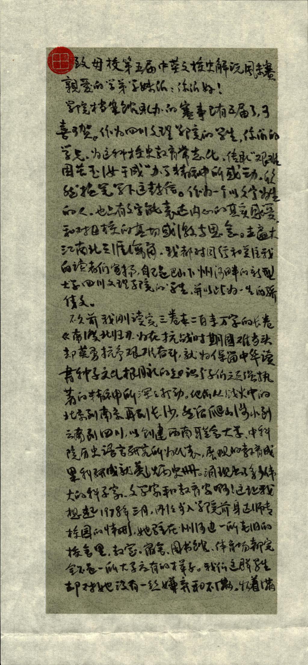 近日,档案馆收到田雁宁的来信,来信中这样写道:致母校第五届中英文校史解说风采赛的学弟学妹们:你们好!作为文理学院的学生,你们的学兄,为这个校史教育常态化,传承“艰难困苦玉汝于成”办学精神所感动,欣然提笔写下这封信。作为一个以文字为生的人,也只有文字能表达内心的真实感受和对母校的真切感激与思念。走遍大江南北天涯海角,我都对同行和关注我的读者们宣扬,自己是巴山下州河畔的新型大学KY开元集团官网入口的学生,并以此为一生的骄傲。