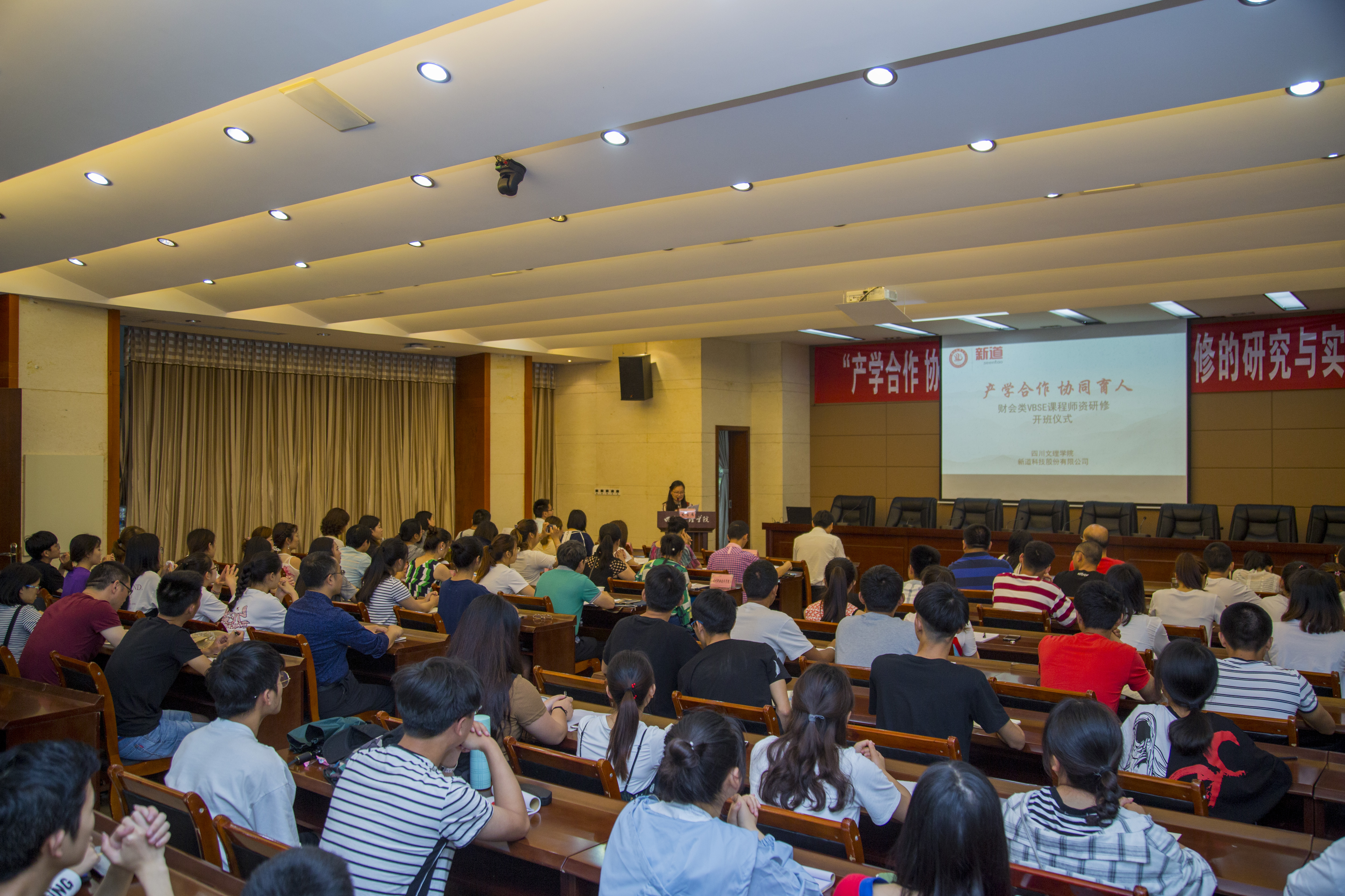 新道公司是一家致力于服务教育事业的科技公司,在教育部“产学合作 协同育人”的项目的契机下,结合把企业搬进校园”的实践教学理念,同学校开展财会类VBSE课程师资研修,旨在通过改变学生“学”、教师“教”、学校“训”,能够更好地帮助学校将学生培养成为“知岗位、懂业务、熟工具、擅沟通、强实战”的复合型人才。