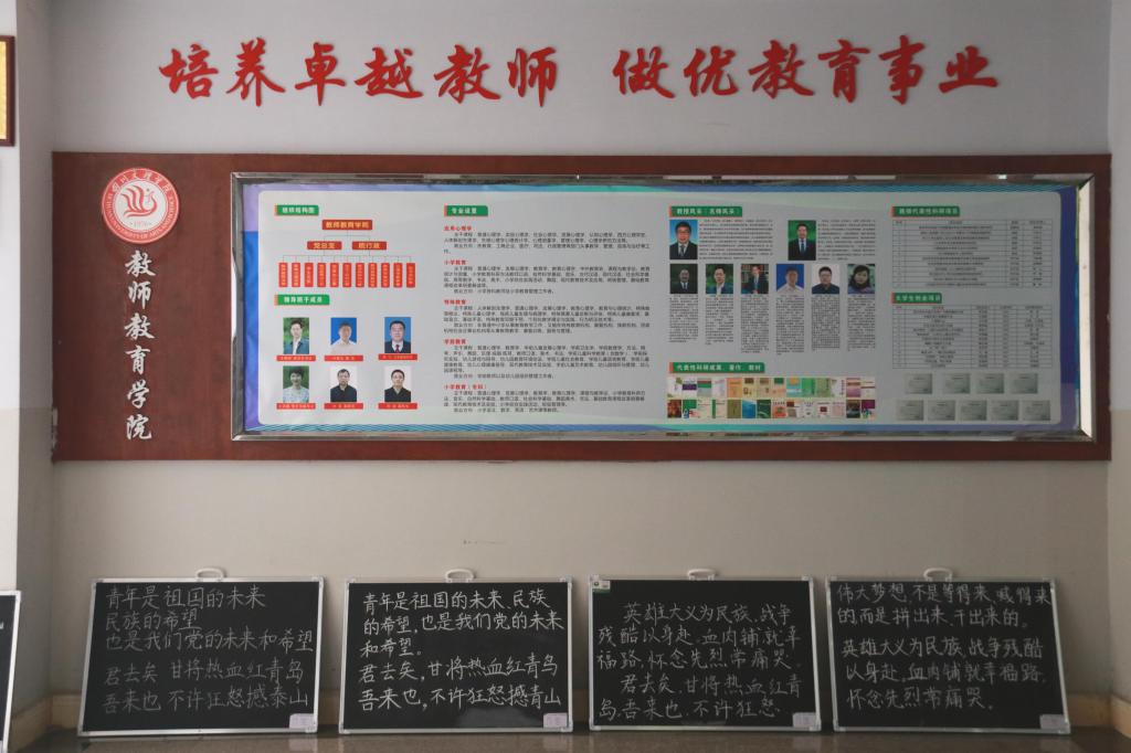近日,教师教育学院在博文楼举行师范生技能展示活动。此次活动采用“一班一展”“一周一展”“一主题一展”的形式,通过钢笔字、毛笔字、粉笔字和绘画等作品,以严格的技能要求、创造性的艺术表达持续做好师范生职业技能训练。