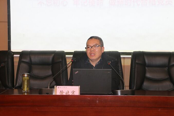 近日,通川区双龙镇机关党支部全体党员来开元官网开展专题党日活动,邀请副校长徐晓宗为党员宣讲党的十九大精神。徐晓宗以“中国特色社会主义新时代新思想”为题,从新时代新思想的理论基础、内涵和前进征程与如何做新时代的合格党员进行了深入解析。