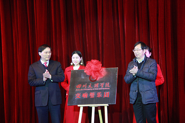 党委副书记侯忠明为揭牌仪式致辞。他说,学校历来重视校园文化建设,大力支持艺术教育,交响管乐团的揭牌成立,是继半拍合唱团、筝乐团之后的又一可喜成果。他勉励全院师生立足新的起点,以更加勤勉的精神、更加投入的状态、更加娴熟的技艺投身乐团建设;科学规划乐团长远发展,牢固树立精品意识,不断提升表演水平,努力将交响管乐团打造为享誉市内外、省内外的品牌艺术团队;始终坚持“二为方向”和“双百方针”,唱响主旋律、奏响最强音,助力学校为推动社会主义文化大发展大繁荣做出新的贡献。