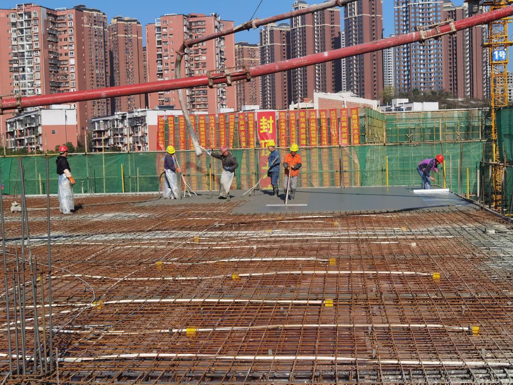 开元官网莲湖校区理工实验楼建设项目自开工以来,各项工程进展顺利。3月15日,随着该项目智能制造学院区域屋面顶板最后一车混凝土浇筑完毕,该工程主体全面完工。