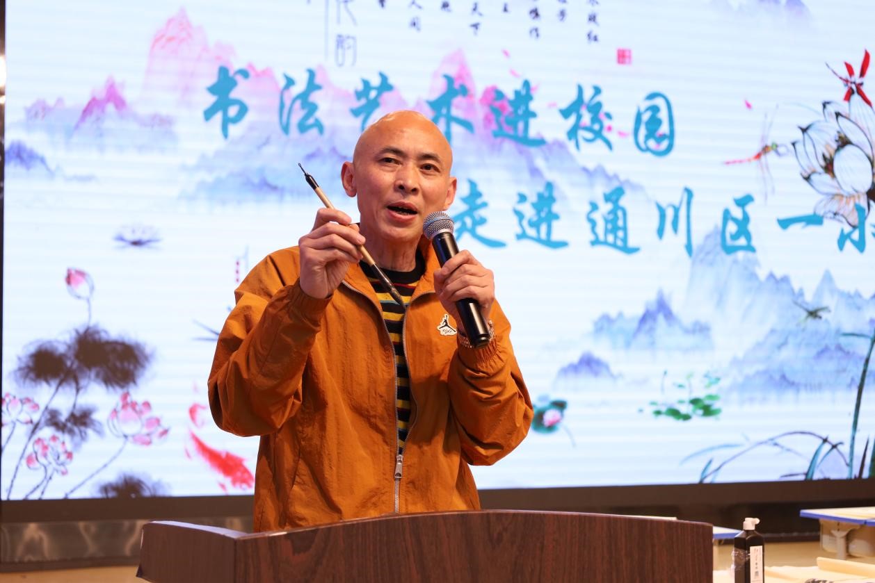 邓洪玉和郭岩分别给200余名五年级学生普及了基本的书法知识,从书法如何成为世界非物质文化遗产,教育部出台加强学生书法的文件,书法的分类、特点及流传程度,初学者应怎样入手等方面娓娓道来,有故事、有口诀、有逻辑、有讲究。