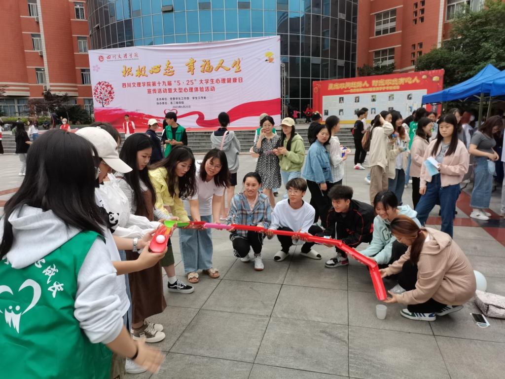 老师和同学们在心理体验区参加丰富多彩的心理体验活动。活动形式包括心理健康知识宣传、表达沟通训练、素质拓展、DIY体验、心理测验等。活动现场笑声不断,DIY扭扭花束、活力跳跳跳、情绪垃圾箱、齐心协力大闯关等活动前排起了长队。学生们在活动中化愁容为笑颜,内心的压抑也随之宣泄出来。