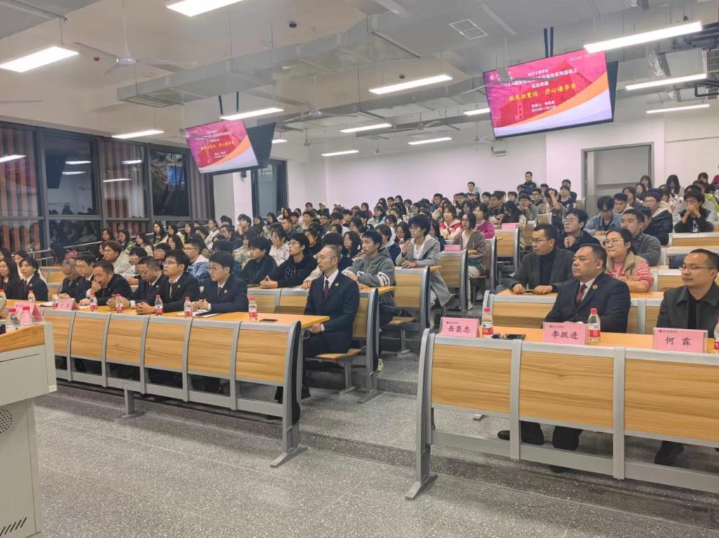 达州市人民检察院部分检察官,政法学院&知识产权学院、数学学院、财经管理学院等师生到场聆听。