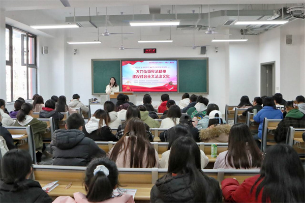 为引导高校大学生树立正确的税收法治观念,营造尊法护法、诚信纳税的良好社会氛围,财经管理学院联合达州税务局税宣中心将税法课堂搬进校园,于12月6日在莲湖东区开展大学生税收普法专题讲座。