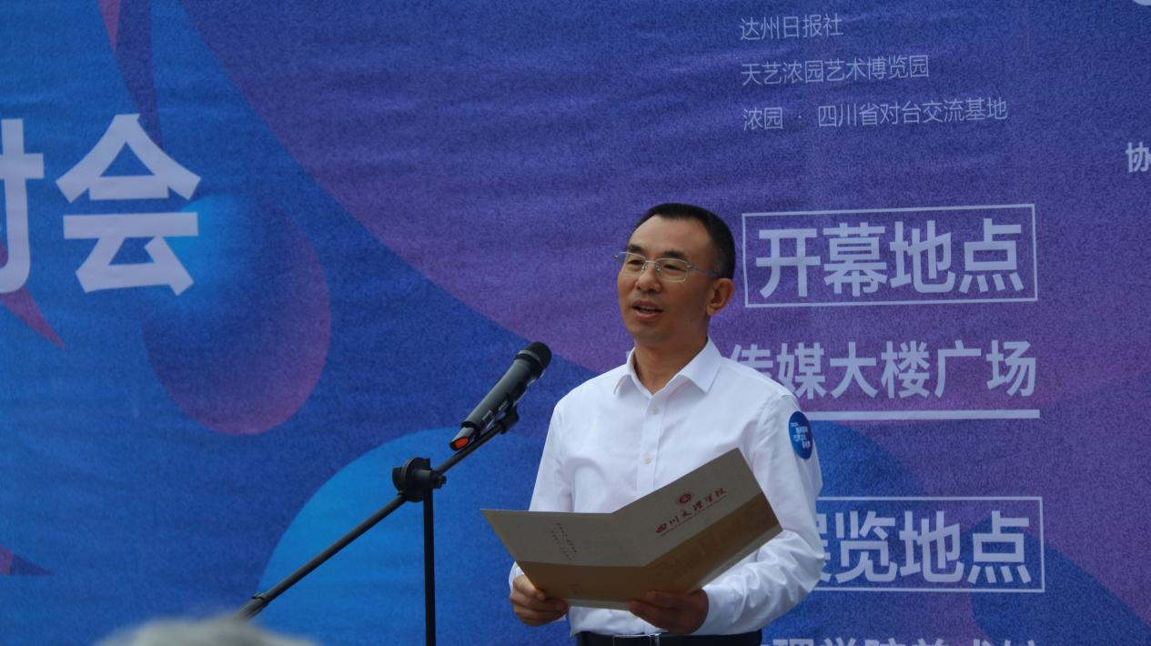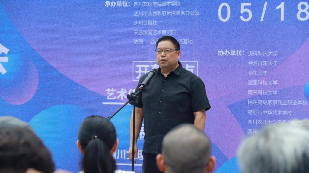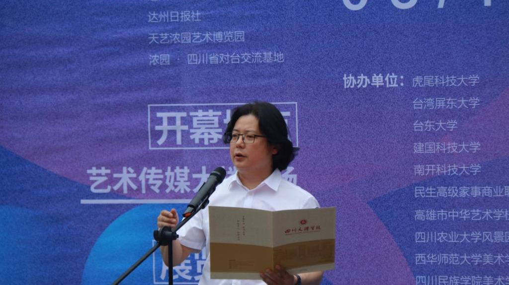 开幕式上,美术学院院长刘承川教授介绍本次活动的基本情况;台湾东华大学洄澜学院院长廖庆华教授分享此次在大陆交流的感想;“2024海峡两岸巴蜀文化艺术季”活动执行方成都浓园集团董事长杨丽女士对巴蜀文化艺术季做了简要介绍。