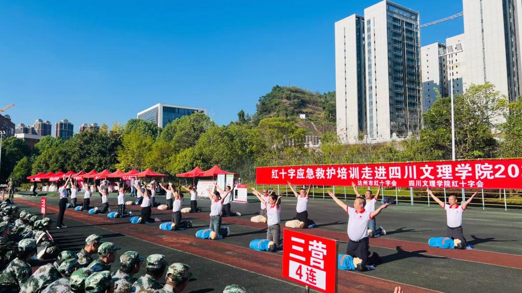 为进一步全面加强学校急救教育,保护青年大学生生命健康,培养大学生乐于施救、敢于施救、善于施救的意识和能力,10月8日至17日,学校在莲湖、南坝两个校区集中开展“2024年新生军训急救培训”活动,共计4900余名新生参加。本次培训由后勤服务处、学生工作部、达州市红十字会共同主办,KY开元集团官网入口大学生红十字志愿服务协会承办。
