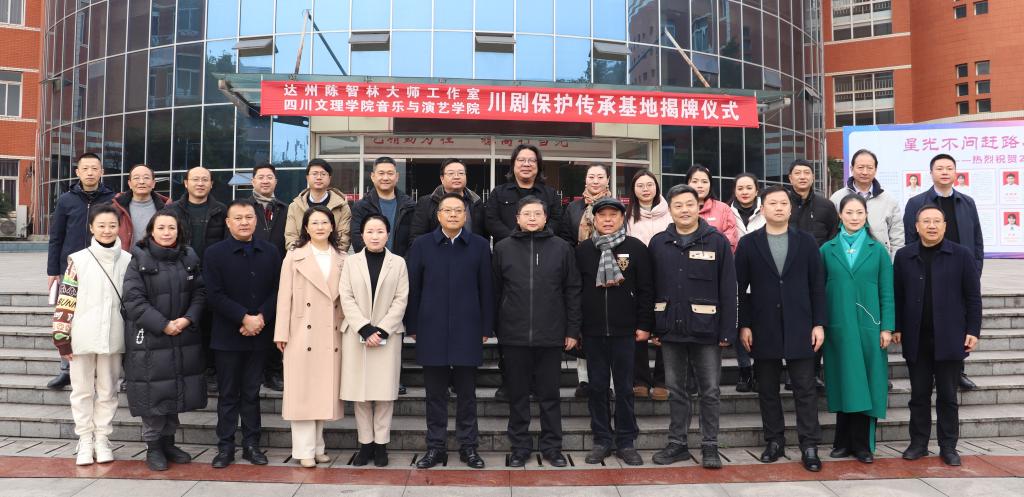 市委宣传部、市文化体育和旅游局、市文学艺术界联合会、市艺术剧院有限责任公司、市新文艺组织发展联合会、市电影家协会、通川区音乐家协会、达州市陈智林大师工作室、学校校地合作处和我院教师代表参加揭牌仪式。