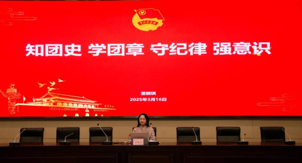 第三课由雷颖琪以“知团史 学团章 守纪律 强意识”为题,开展团史、团章、纪律处分条例等团内规章和团的基本知识教育,引导学员以团章为基本遵循,自觉履行团员义务,正确行使团员权利,使团章要求内化于心、外化于行,争做新时代青年先锋。
