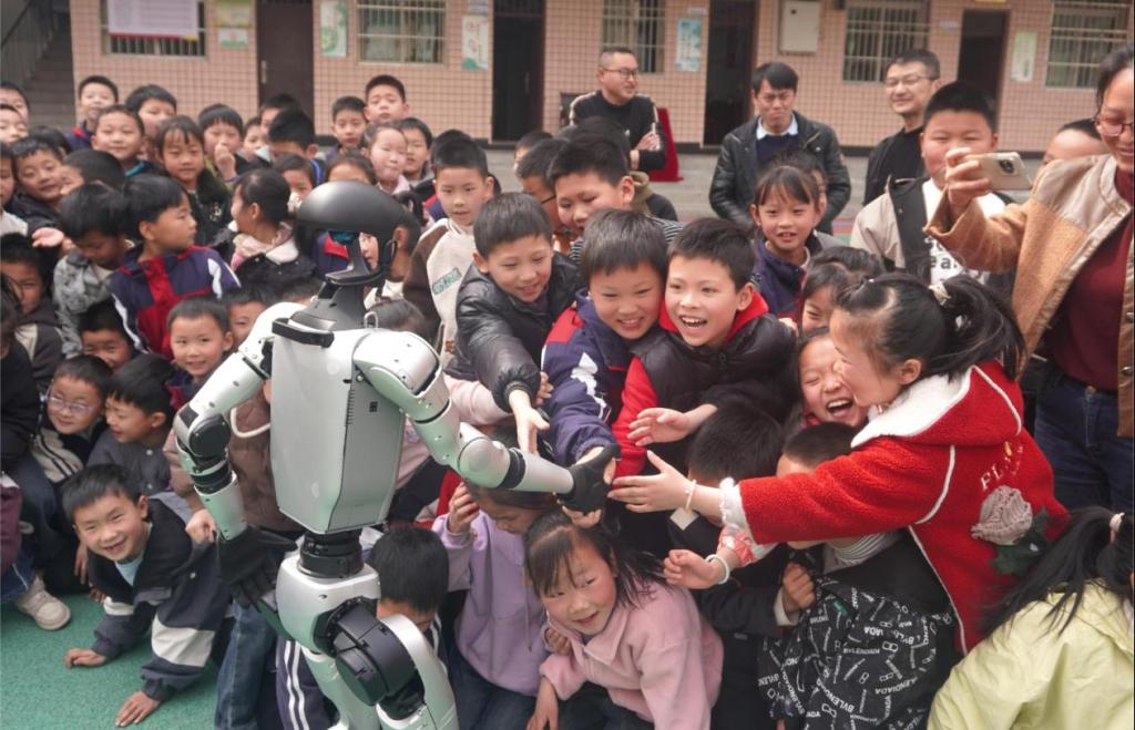 校地协同聚合力,踔厉奋发启新程。志愿者团队深入竹峪镇各中小学校,开展科技教育专题座谈,强调科技教育对乡村振兴的基础性作用。在虹桥小学、竹峪小学、竹峪中学、溪口小学等学校,志愿者采用“原理讲解+互动体验”模式,让乡村孩子近距离接触智能科技。智能机器人与学生握手,机器狗表演的倒立、奔跑等动作,让孩子们眼中闪烁着好奇与兴奋的光芒。志愿者通过讲述机器狗AI算法逻辑,引导孩子们理解人工智能,激发科技探索兴趣,播撒科技希望的种子。志愿者负责人何希表示:“希望小朋友们能保持这份好奇心,未来成为推动科技进步的创新力量。”