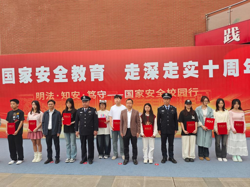 校警联动共筑安全防线。4月15日上午,“校警共建护国安”宣传暨2025年大学生国家安全素养展示获奖作品颁奖仪式在艺术传媒大楼广场隆重举行。仪式由副校长陈光平主持,市公安局副局长沈晓,市委办副主任宿都,市公安局政保支队支队长谭清福,达州市公安局宣传科、达州日报、自媒体、电视台等媒体代表、相关业务警种民警代表以及开元官网部分师生代表出席活动。