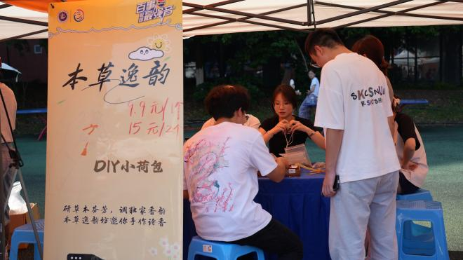 文化创意集市集创新、传承与商业实践于一体。文化产业管理专业学生携手校内其他专业学生,将课堂所学转化为市场实践,原创50多个手作、文化衍生品等商品集市。特别设置非遗苎麻技艺展示区和竹编体验区,让参与者近距离感受传统工艺的魅力。