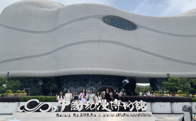 5月2日至3日,团队先后赴杭州西溪创意产业园、万科·杭州玉鸟集BIRLAND和中国动漫博物馆,调研杭州市文创产业发展情况。在西溪创意产业园,团队拜访了麦家理想谷、朱海文化创意工作室等文化大师工作室,学习文化空间可持续发展研究宝贵经验。玉鸟集商业街区的“社区共创”模式令师生印象深刻,其以文化遗产为IP内核,结合数字展览、沉浸式戏剧等业态,实现了文化、商业与社区的深度融合,为文化产业教学提供了鲜活案例。在中国动漫博物馆,师生们系统了解了中国动漫百年发展历程和数字技术在动漫产业中的应用。通过沉浸式互动展区,深入体验动漫IP开发、衍生品设计等产业链环节,为文化创意与数字技术融合教学研究提供了新思路。