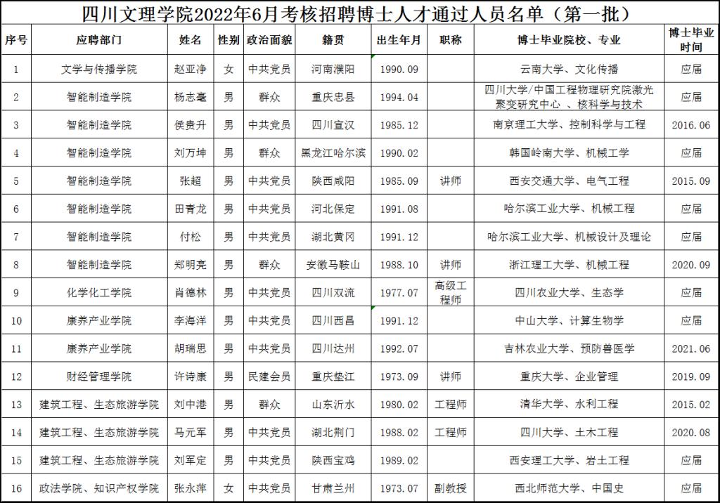 按照《KY开元集团官网入口2022年博士人才招聘公告》,经过初试(初审)、复试考核程序,现将KY开元集团官网入口2022年6月考核招聘博士人才通过人员名单(第一批)予以公布,请报考者注意查阅。