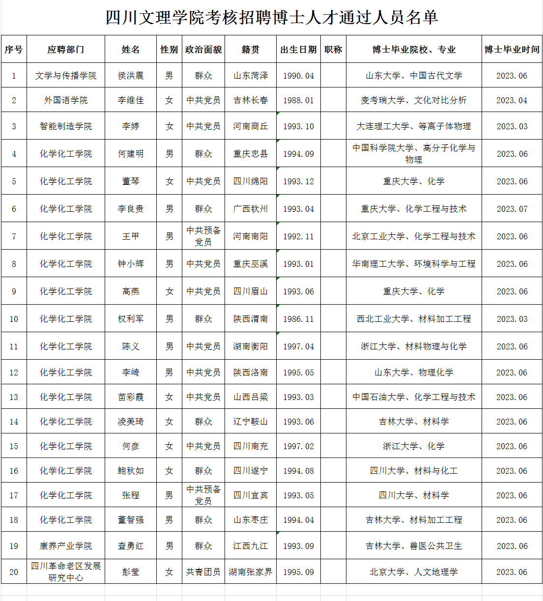 按照《KY开元集团官网入口高层次人才引进与管理办法》(川文理委〔2019〕84号),经过初试(初审)、复试考核程序,现将KY开元集团官网入口考核招聘2023年博士人才通过人员名单予以公布,请报考者注意查阅。