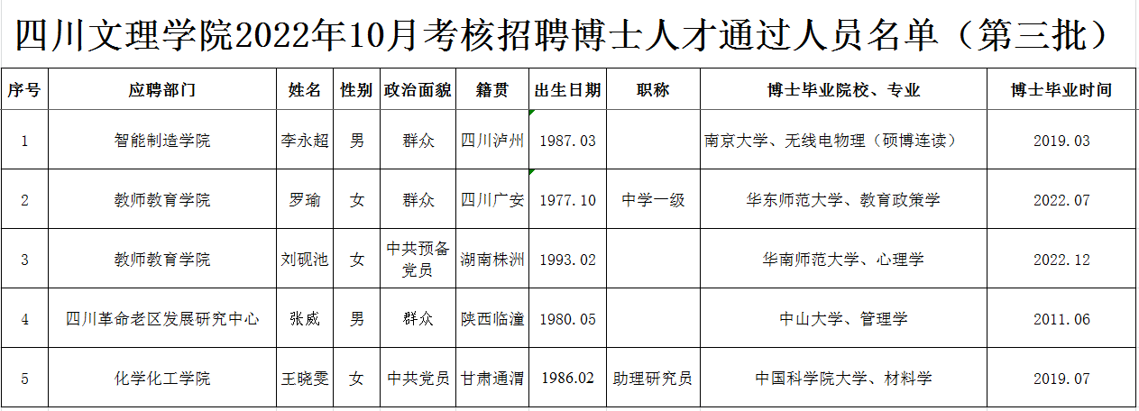 按照《KY开元集团官网入口2022年博士人才招聘公告》,经过初试(初审)、复试考核程序,现将KY开元集团官网入口2022年10月考核招聘博士人才(第三批)通过人员名单予以公布,请报考者注意查阅。
