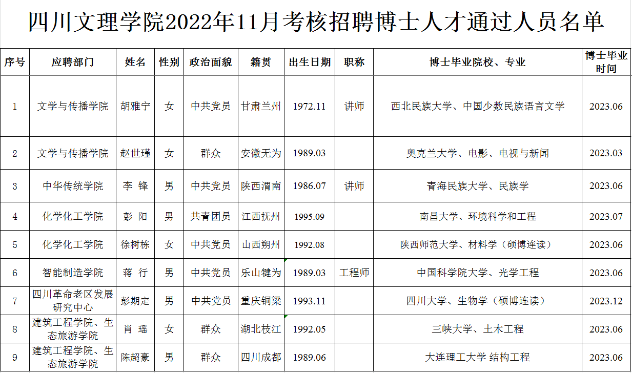 按照《KY开元集团官网入口2023年博士人才招聘公告》,经过初试(初审)、复试考核程序,现将KY开元集团官网入口2022年11月考核招聘博士人才通过人员名单予以公布,请报考者注意查阅。