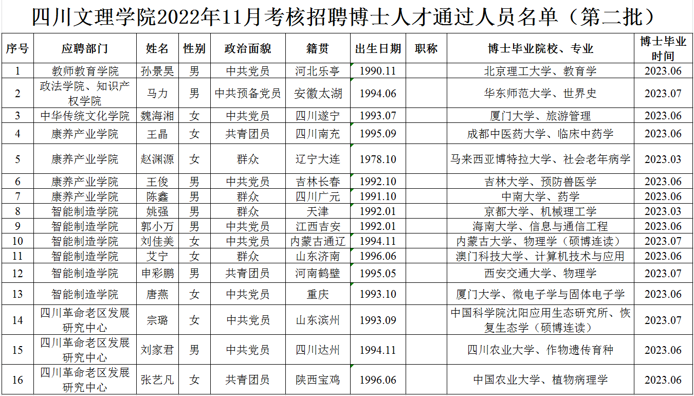 按照《KY开元集团官网入口2023年博士人才招聘公告》,经过初试(初审)、复试考核程序,现将KY开元集团官网入口2022年11月考核招聘博士人才通过人员名单(第二批)予以公布,请报考者注意查阅。