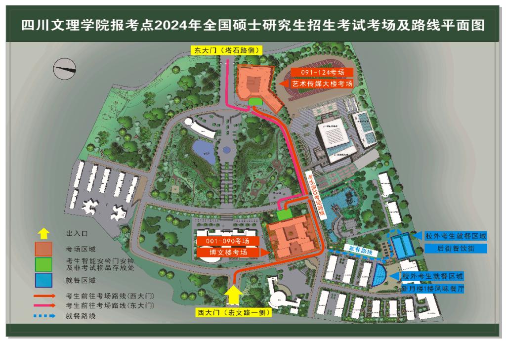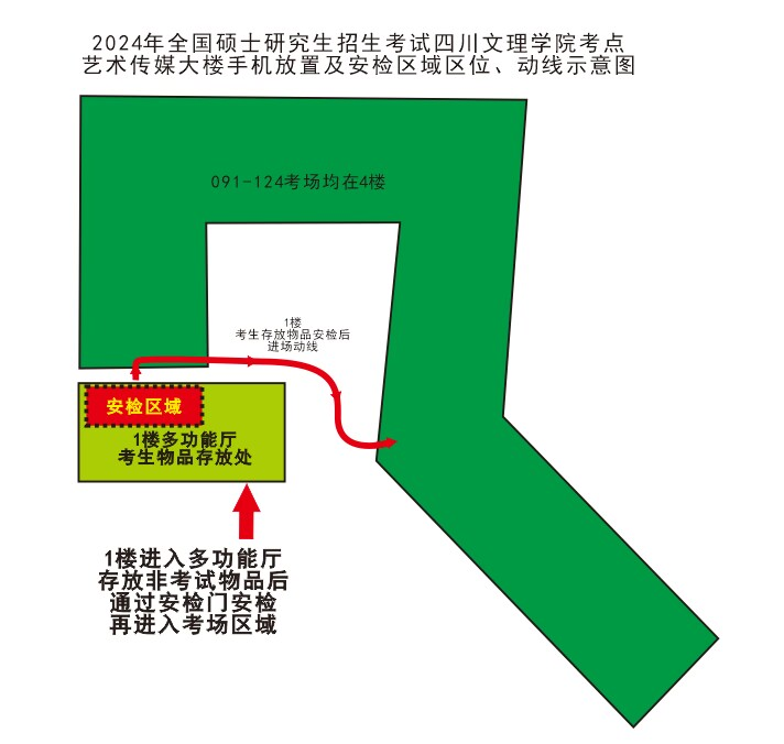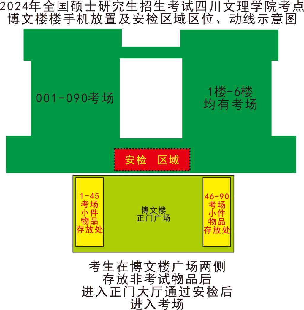 (1)考生入场安检前,应将考试无关物品存放在手机放置区域。博文楼设置在博文楼正门广场,艺术传媒大楼设置在多功能厅(校园影院)。