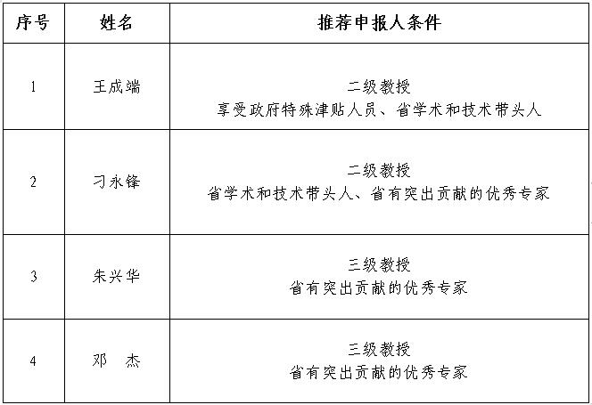 根据四川省教育厅《关于做好第四届四川省专家评议(审)委员会推荐工作的通知》、四川省人力资源和社会保障厅《关于开展第四届四川省专家评议(审)委员会推荐工作的通知》(川人社办发〔2019〕61号)文件精神,经个人申报、人事处审核、学校同意,推荐以下人员申报第四届四川省专家评议(审)委员会: