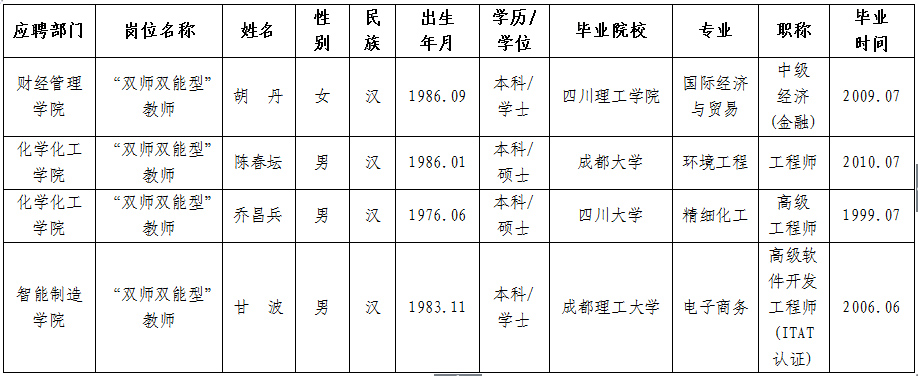 按照《KY开元集团官网入口“双师双能型”教师2018年招聘公告》,考核小组对应聘开元官网“双师双能型”教师进行了考核。经学校研究,现将考核结果公示如下,公示期限为3天(2018年1月24日至2018年1月26日)。公示期间接受社会监督和举报,举报者应以真实姓名书面或电话向KY开元集团官网入口人事处或纪委反映。监督举报电话:0818-2790077、0818-2790019, 邮箱:scwlrsc@126.com、jwjsc@sohu.com。