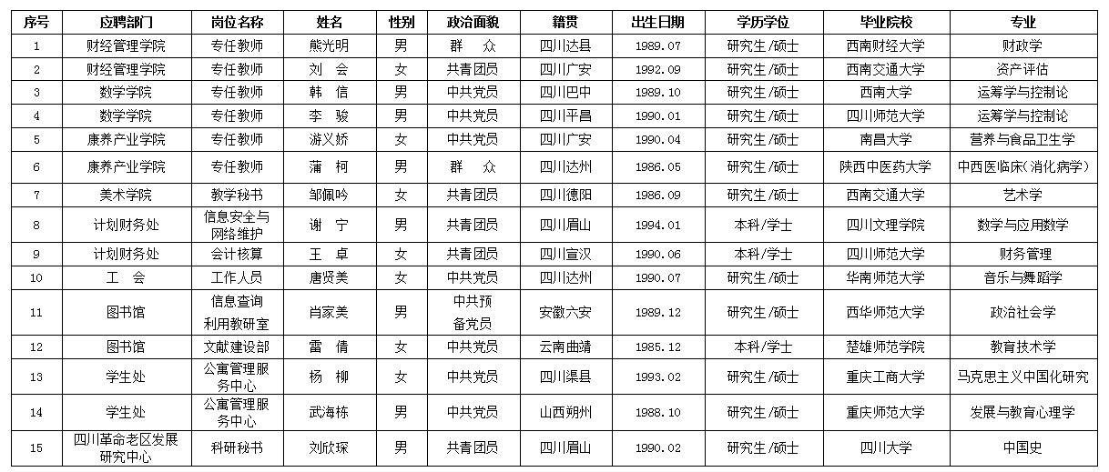 按照《KY开元集团官网入口2017年6月非事业单位编制人员考核方案》,由学校纪委监督,考核小组对应聘开元官网专任教师、管理岗、教辅岗人员进行了考核。经学校研究,现将考核结果公示如下,公示期限为3天(2017年6月29日至2017年7月1日)。公示期间接受社会监督和举报,举报者应以真实姓名书面或电话向KY开元集团官网入口人事处或纪委反映。监督举报电话:0818-2790077、0818-2790019 邮箱:scwlrsc@126.com、jwjsc@sohu.com。