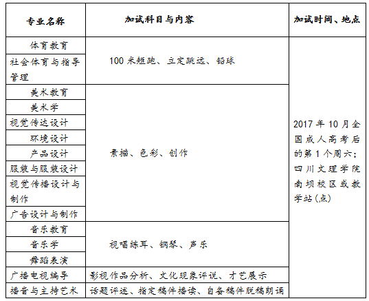 五、艺术、体育类专业加试科目、时间、地点一览表