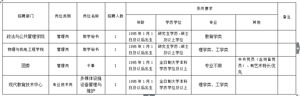 因工作需要,经学校领导同意,现面向社会公开招聘编制外工作人员4名,现将情况公告如下: