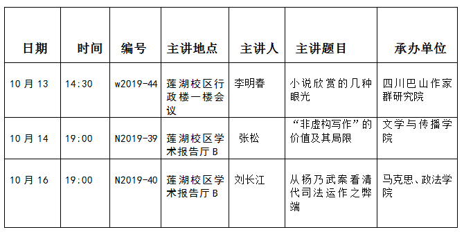 上一条:2019年度秋季第八周学术讲座安排(2019.10.21-10.27)