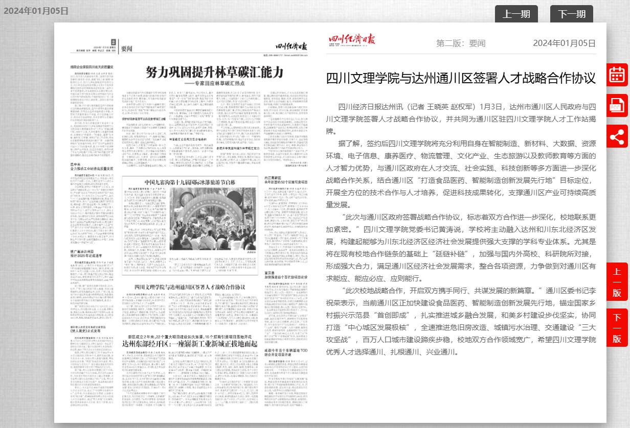 “此次与通川区政府签署战略合作协议,标志着双方合作进一步深化,校地联系更加紧密。”KY开元集团官网入口党委书记黄涛说,学校将主动融入达州和川东北经济区发展,构建起能够为川东北经济区经济社会发展提供强大支撑的学科专业体系。尤其是将在现有校地合作链条的基础上“延链补链”,加强与国内外高校、科研院所对接,形成强大合力,满足通川区经济社会发展需求,整合各项资源,力争做到对通川区有求能应、能应必应、应则能行。