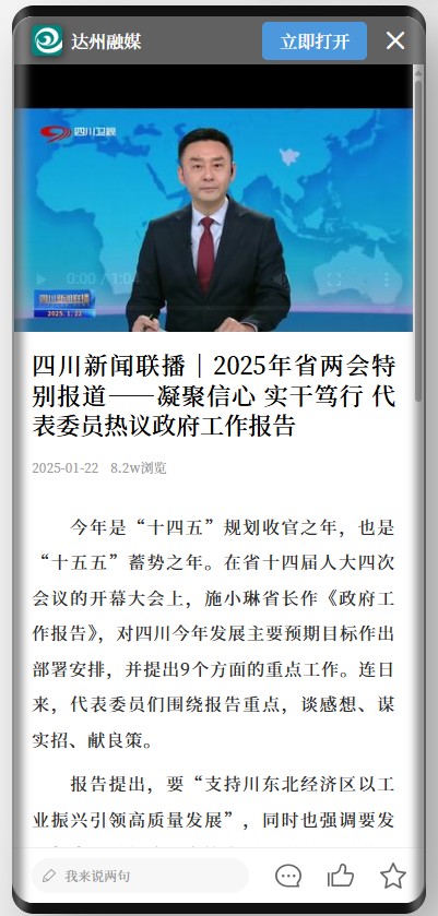 今年是“十四五”规划收官之年,也是“十五五”蓄势之年。在省十四届人大四次会议的开幕大会上,施小琳省长作《政府工作报告》,对四川今年发展主要预期目标作出部署安排,并提出9个方面的重点工作。连日来,代表委员们围绕报告重点,谈感想、谋实招、献良策。
