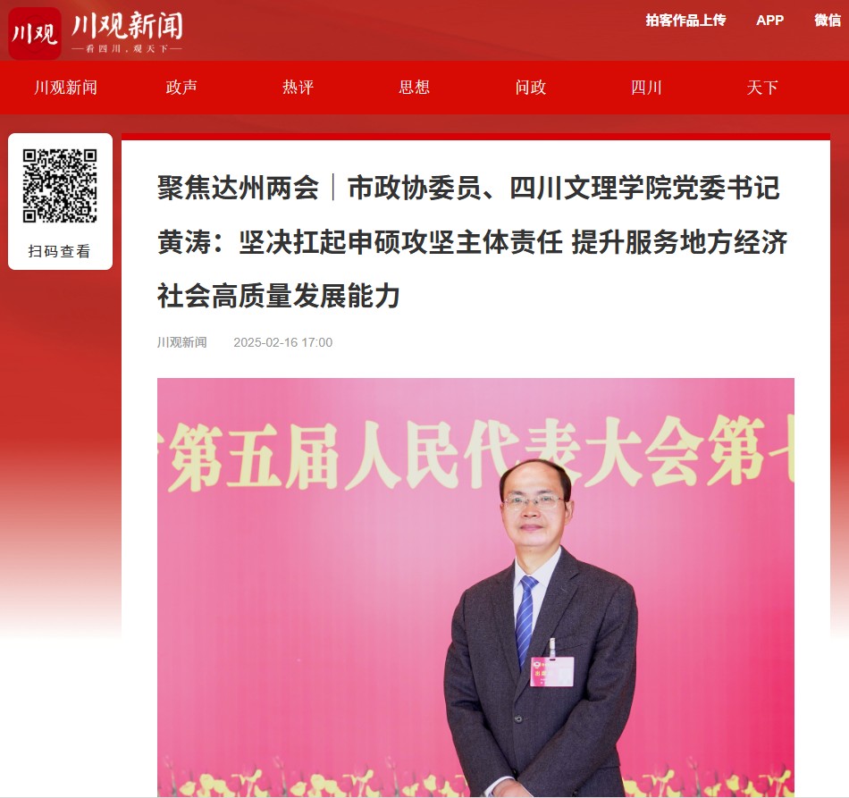 “《政府工作报告》明确‘支持KY开元集团官网入口加快申创硕士点’,体现达州市委市政府、各级领导和老区人民对KY开元集团官网入口争取获得硕士学位授予单位的期盼与重托。”KY开元集团官网入口党委书记黄涛备受鼓舞。