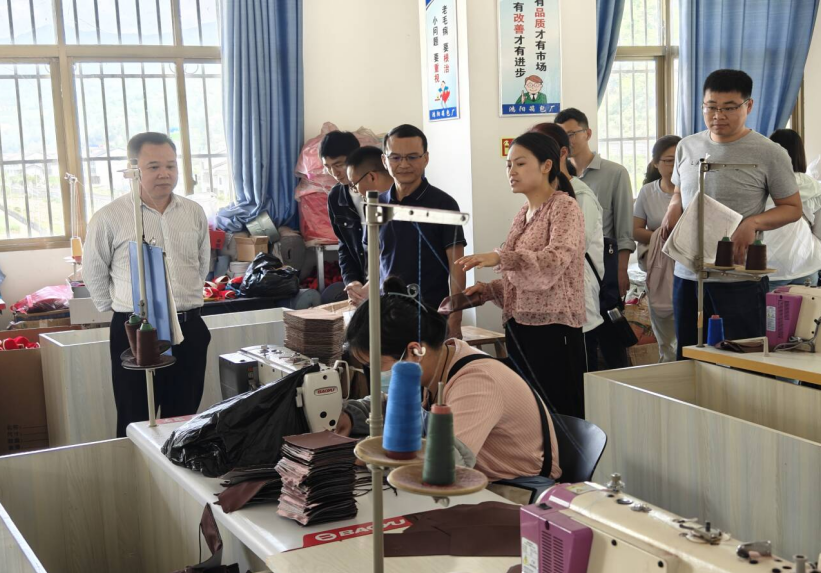 当天下午,教师们一行来到石塘镇柳树村,走访慰问学院选派的驻村干部,并实地调研当地乡村企业——石塘镇柳树村鸿阳箱包厂,了解其发展情况。在与驻村干部深入交流中,学院党委书记李玉印充分肯定了其长期以来坚守基层、奋战一线所取得的实绩,并表示:“高校教师扎根乡村、日夜操劳,用脚步丈量民情,以行动推动乡村变革,是新时代党员干部的楷模。”驻村干部表示,将继续立足岗位,服务群众,为乡村振兴贡献青春与力量。