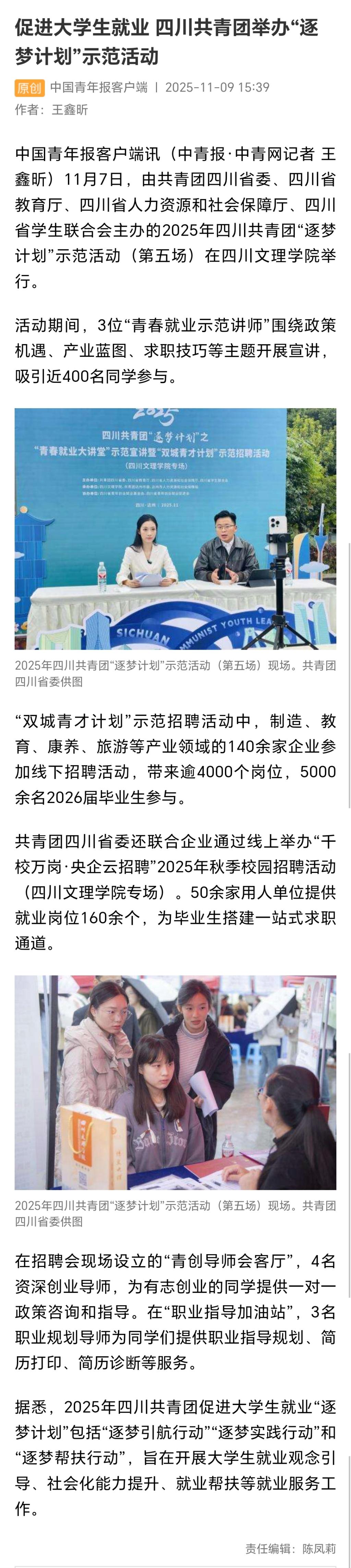 中国青年报客户端讯(中青报·中青网记者 王鑫昕)11月7日,由共青团四川省委、四川省教育厅、四川省人力资源和社会保障厅、四川省学生联合会主办的2025年四川共青团“逐梦计划”示范活动(第五场)在KY开元集团官网入口举行。