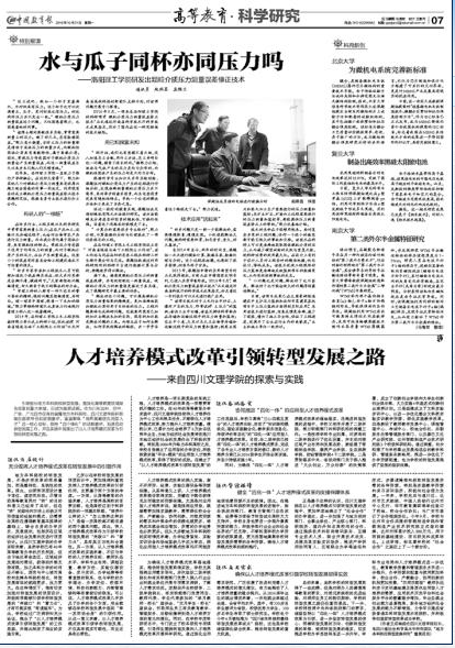 10月31日,《中国教育报》以《人才培养模式改革引领转型发展之路》为题,刊载校长王成端教授关于地方本科院校转型发展,深化高等教育领域综合改革的实践和探索。